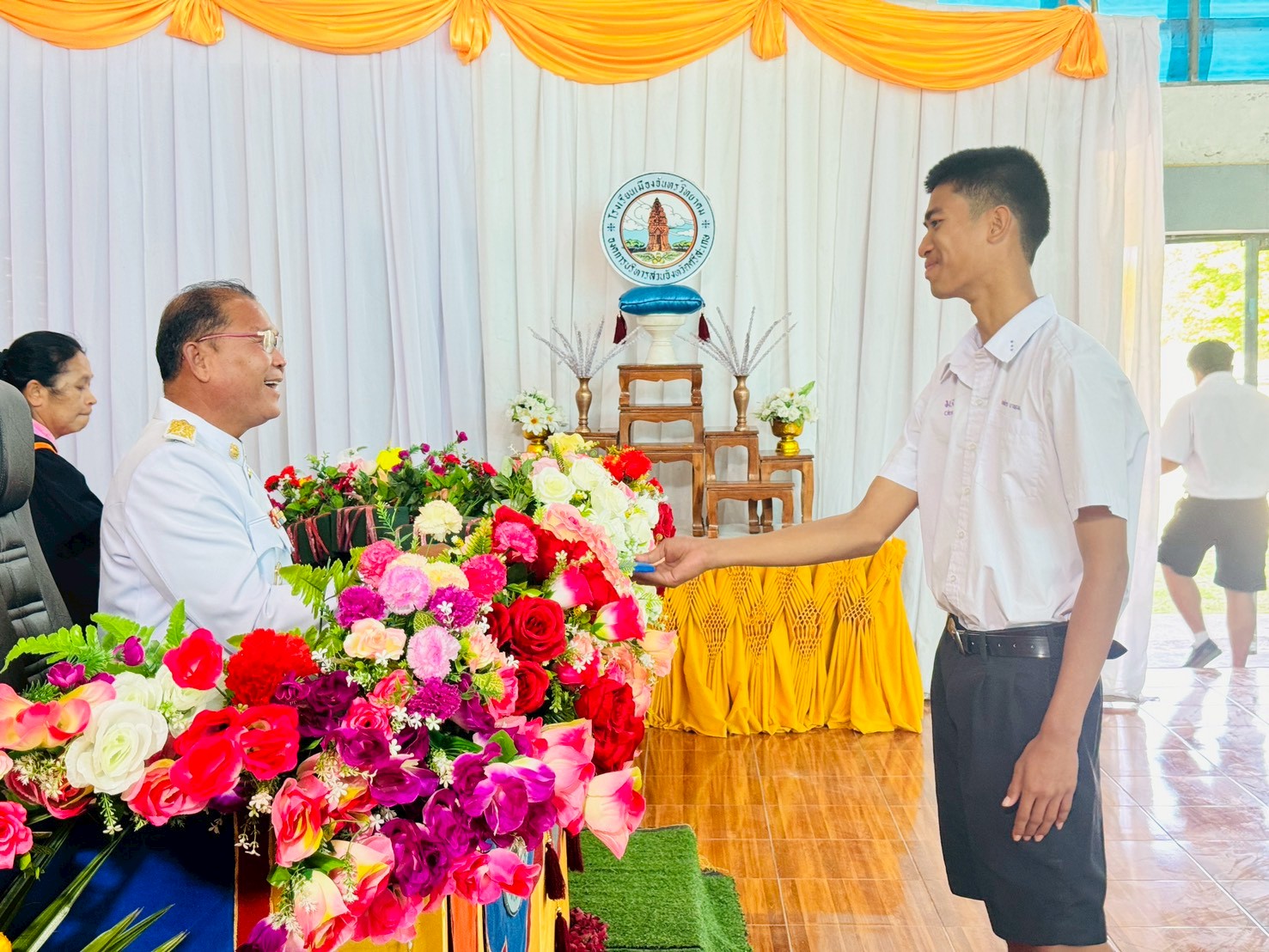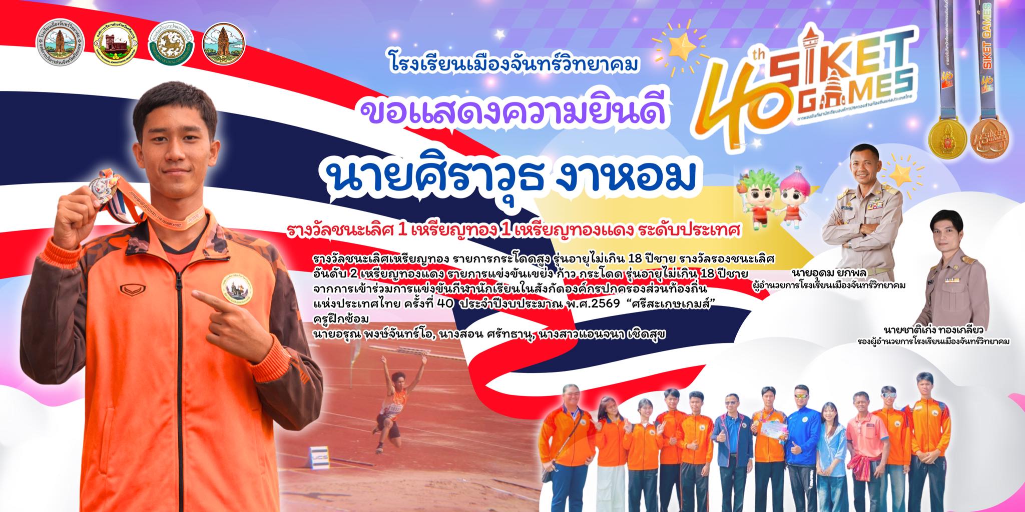 แสดงความยินดี นายศิราวุธ งาหอม เหรียญทอง การแข่งขันกีฬานักเรียนสังกัดองค์กรปกครองส่วนท้องถิ่นแห่งประเทศไทย ครั้งที่ 40 ศรีเกษเกมส์ ระดับประเทศ