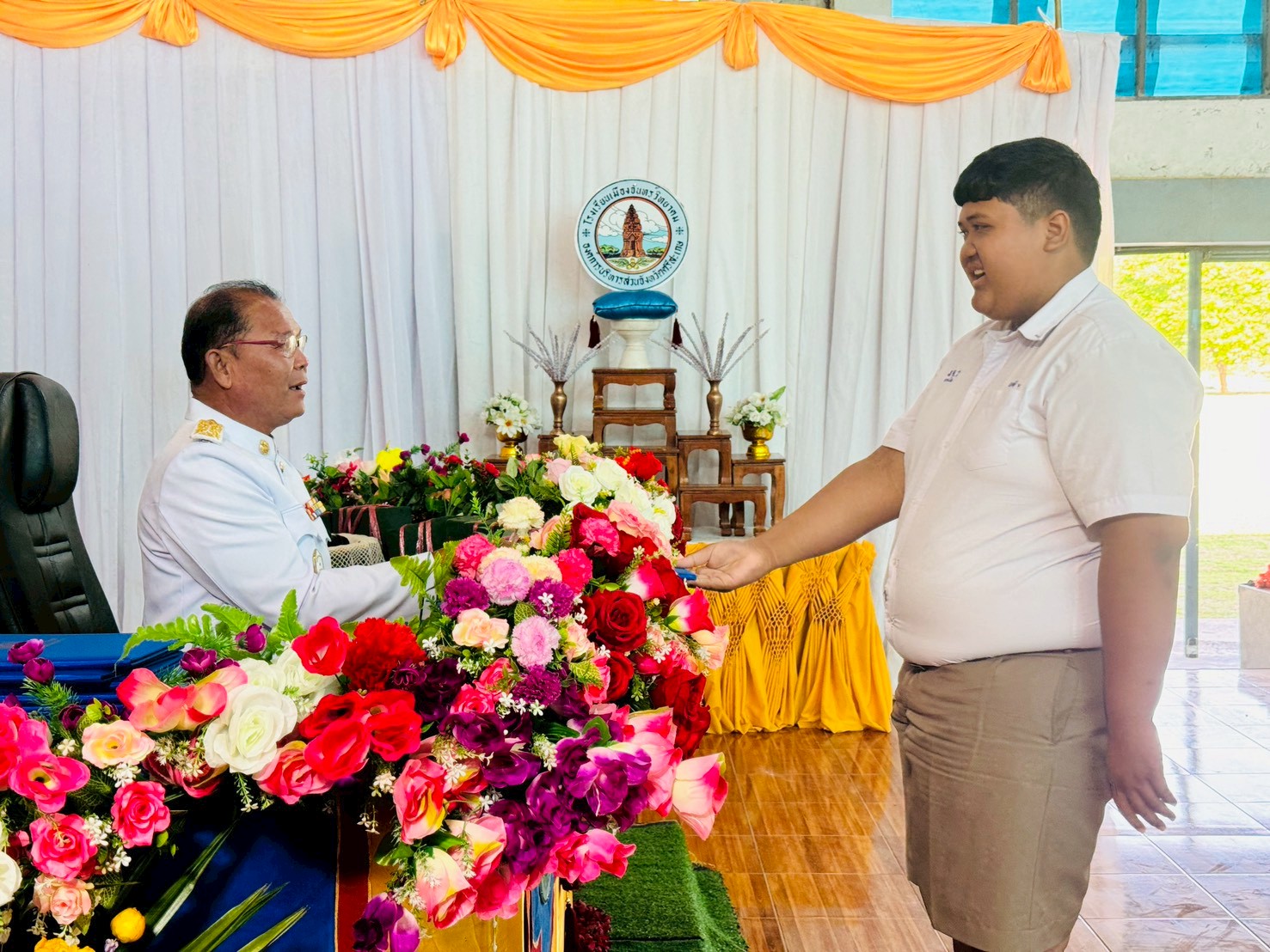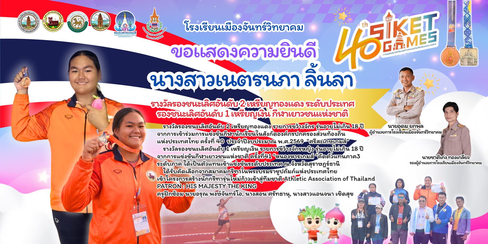 แสดงความยินดี นายศิราวุธ งาหอม เหรียญทอง การแข่งขันกีฬานักเรียนสังกัดองค์กรปกครองส่วนท้องถิ่นแห่งประเทศไทย ครั้งที่ 40 ศรีเกษเกมส์ ระดับประเทศ