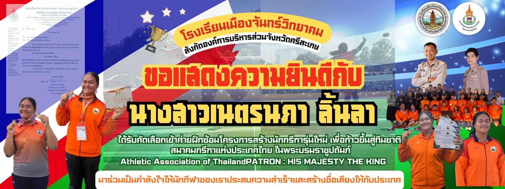 ยินดีต้อนรับทุกท่านเข้าสู่เว็บไซต์โรงเรียนเมืองจันทร์วิทยาคม สังกัด อบจ.ศรีสะเกษ